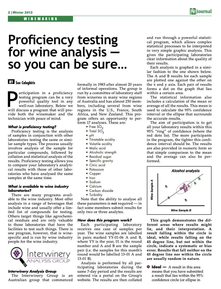 Proficiency testing for wine analysis — so you can be sure Practical Winery and Vineyard, Winter 2013, pp.2-3